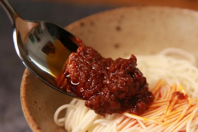 咸度很得當(dāng),肉沫碎且量足。與面條拌勻后會(huì)均勻的掛在每一根面條上!與醬混為一體的蔬菜、辣椒粒,好吃多料誠(chéng)意滿滿,讓人很難相信這是一個(gè)幾分鐘便能制成的“快手拌面醬”。
