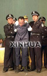 河北省高級人民法院對石家莊特大爆炸案做出二審判決,依法維持石家莊市中級人民法院對被告人靳如超、王玉順、郝鳳琴判處死刑,剝奪政治權(quán)利終身的一審判決;改判被告人胡曉洪死刑,緩期兩年執(zhí)行,剝奪政治權(quán)利終身;同時,根據(jù)最高人民法院的授權(quán),依法核準(zhǔn)靳如超、王玉順、郝鳳琴死刑,并于宣判后立即押赴刑場,執(zhí)行槍決。圖為靳如超在公開宣判大會上。