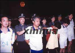 5月11日,汕頭市舉行嚴(yán)厲打擊涉稅犯罪宣判執(zhí)行大會(huì)。經(jīng)最高人民法院核準(zhǔn),汕頭市中級(jí)人民法院對(duì)騙取出口退稅的罪犯黃振池、林俗存執(zhí)行死刑。另有6個(gè)案件20人分別被一審宣判。新華社記者張肄文攝