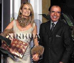 阿根廷前總統(tǒng)卡洛斯· 梅內(nèi)姆5月19日在智利首都圣地亞哥為其未婚妻、前環(huán)球小姐博洛科慶祝35歲生日。據(jù)梅內(nèi)姆的發(fā)言人稱,這對(duì)情侶將于5月26日舉行婚禮。