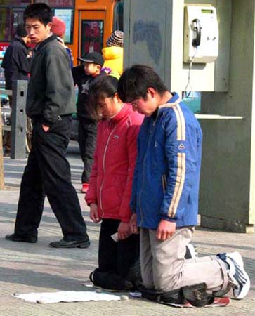 兩名失學的“兄妹大學生”同時行乞