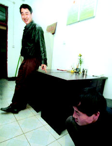自作聰明的王某將被依法制裁。民警(左)笑著說:“從來沒見過這樣的蠢賊!”實習記者 路超 攝