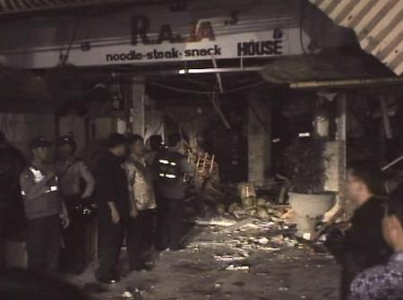 印尼旅游勝地巴厘島的一家餐館被炸得面目全非。
