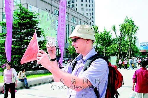 國(guó)慶節(jié)的島城街頭,一位“老外”正在將美麗的畫(huà)面攝入鏡頭。王群攝