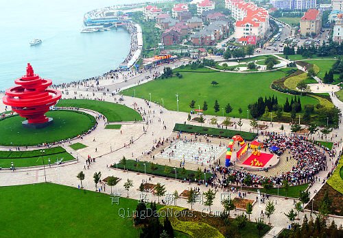 昨天,五四廣場(chǎng)精彩的文藝演出吸引了許多市民和游客。    李學(xué)亮攝    昨天,一群手持國(guó)旗的學(xué)生在五四廣場(chǎng)游覽。王群攝    國(guó)慶節(jié)的島城街頭,一位“老外”正在將美麗的畫(huà)面攝入鏡頭。王群攝