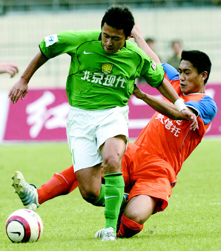 天下午進(jìn)行的足協(xié)杯半決賽第一回合比賽中,客場作戰(zhàn)的魯能泰山隊(duì)3:1力克北京現(xiàn)代,一只腳已經(jīng)邁入決賽賽場。    泰山主帥圖巴開場時(shí)排出了相對年輕的主力陣容:門將楊程;后衛(wèi)矯哲、舒暢、巴辛、王超;中場高堯、周海濱、崔鵬、鄭智;前鋒丹丘、呂征。比賽一開始泰山隊(duì)就反客為主占據(jù)主動(dòng),周海濱第6分鐘便有一腳射門擊中北京隊(duì)門柱,而北京隊(duì)直到第30分鐘才組織起一次像樣的進(jìn)攻。上半時(shí)第34分鐘,崔鵬在對方禁區(qū)內(nèi)突破兩名球員的防守小角度射門建功,1:0,泰山隊(duì)領(lǐng)先結(jié)束上半時(shí)。