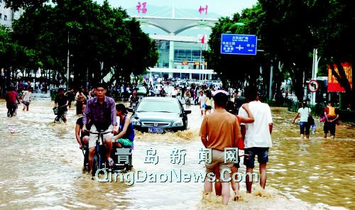 10月3日,福州火車站前的街道嚴重積水。受今年第19號臺風“龍王”的外圍影響,10月2日中午起,福州市遭特大暴雨襲擊,城區(qū)及周邊縣市均出現(xiàn)內(nèi)澇和洪    水,交通無法正常運行,人們的正常生活受到影響。新華社數(shù)碼傳真     <<見3版     |