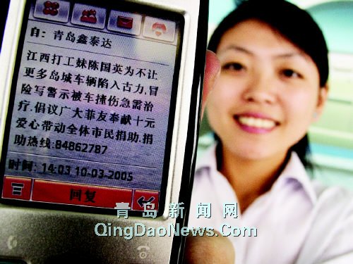 “我們都是有車一族,平日里不少人都吃過(guò)古力沒(méi)蓋的虧,一名外來(lái)打工妹發(fā)現(xiàn)塌陷的古力‘坑’車的情況后主動(dòng)寫(xiě)下警示牌卻被撞傷,咱們能熟視無(wú)睹嗎?”昨天,菲亞特車友會(huì)的一名車友在網(wǎng)絡(luò)上傳的帖子引起眾人關(guān)注。昨天下午,青島鑫泰達(dá)汽車銷售服務(wù)有限公司的張超副董事長(zhǎng)得知此事后,立即組織工作人員將此事編輯成短信,發(fā)送給3000多名車友,“從下午3時(shí)至晚上8時(shí),我們的捐助熱線熱得燙手,已經(jīng)有100多名車友表示愿意捐贈(zèng)給陳國(guó)英治療費(fèi)用。”張超說(shuō)。