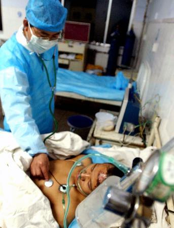 受傷礦工在醫(yī)院接受治療。 新華社記者岳月偉攝