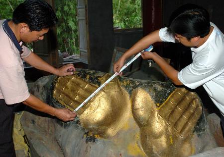 記者日前在云南思茅市景谷傣族彝族自治縣采訪時(shí)得知,該縣至今已發(fā)現(xiàn)26處有上千年歷史的巨型手印、腳印,當(dāng)?shù)匦叛龇鸾痰拇鲎迦罕姲阉鼈兙捶顬椤鞍瓦_(dá)”(即有仙跡的地方)。