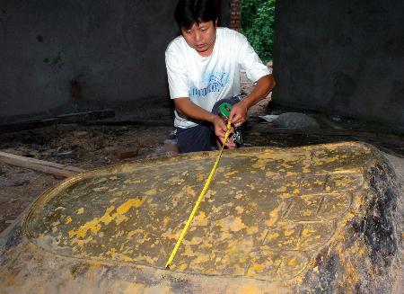 記者來(lái)到距離芒朵社約300米的一處山坡上,看到兩塊均有二三噸重的巨石上,分別有兩個(gè)手印、一個(gè)腳印,手印和腳印均被當(dāng)?shù)卮鲎迦罕娡可狭私鸱。兩個(gè)手掌印中的一個(gè)長(zhǎng)0.65米,寬0.53米,另一個(gè)長(zhǎng)0.84米,寬0.41米,都深陷于巨石中約5厘米,兩只巨手似乎是在用力推動(dòng)巨石。兩米外的另一塊巨石上則有一個(gè)長(zhǎng)1.52米、寬0.75米的腳印。