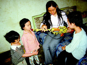 昔日的少女作家龐秀玉與她的三個孩子在一起。