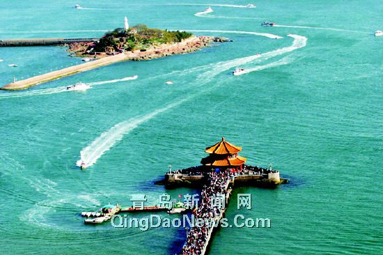今年游客熱捧田橫島、靈山島、齋堂島、竹岔島,成為我市在國(guó)慶長(zhǎng)假旅游中凸現(xiàn)的新亮點(diǎn)。昨日,島城進(jìn)入十一黃金周旅游的高峰期,海上不斷來(lái)往的的游船和長(zhǎng)長(zhǎng)的棧橋, 形成了一幅優(yōu)美的圖案。記者張建華攝<<見(jiàn)15版