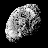 從土衛(wèi)七的外形上看,它只有在兩個方向上可以保持穩(wěn)定的旋轉狀態(tài)(物理學家們將這種形狀的物體稱為不對稱回轉體)。然而,由于受到太陽系各大行星和土星其他衛(wèi)星的影響,土衛(wèi)七的旋轉極不規(guī)則,因此很難預測其上何時會是“白天”,何時是“夜晚”。