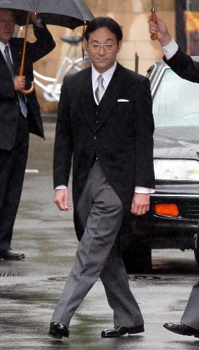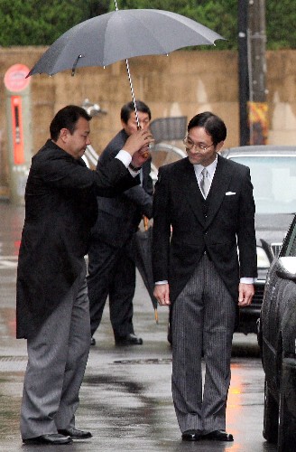 10月5日,日本紀(jì)宮公主的未婚夫、東京都城市整備局職員黑田慶樹(右)離家前往日本東京的日本皇宮,參加在這里舉行的婚期宣布儀式。