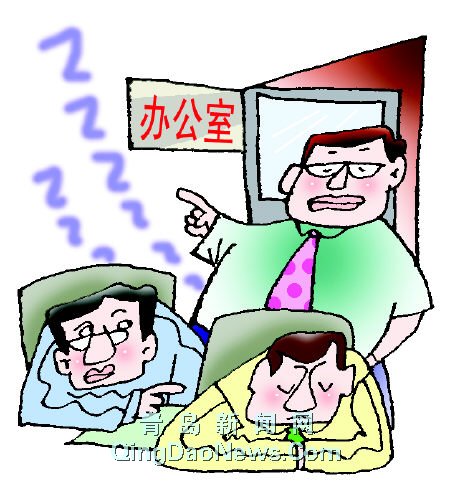 領(lǐng)導(dǎo)進(jìn)來轉(zhuǎn)了一圈便出去了,小林以為警報(bào)解除了,于是摘掉眼鏡想接著睡,沒想到領(lǐng)導(dǎo)殺了個(gè)回馬槍,大林聽到聲響,也趕忙給了小林一拳。