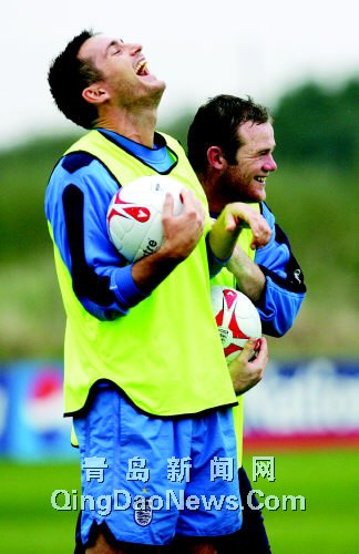 | 英格蘭隊(duì)球員蘭帕德(左)與魯尼輕松備戰(zhàn) |