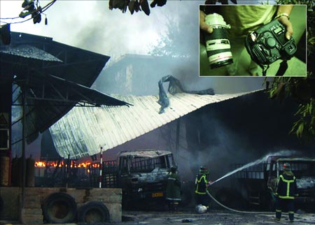 爆炸事件發(fā)生后,本報(bào)以及南方日?qǐng)?bào)等多家媒體均派記者前往采訪,然而采訪卻遭到了暴力阻撓。本報(bào)攝影記者的相機(jī)被一名不明身份男子搶走,被兩次砸落在地,造成全損。該相機(jī)為佳能EOS1DMARK2型機(jī)身,價(jià)值約4萬(wàn)元,佳能70-200MM1:2.8L鏡頭,價(jià)值約1.5萬(wàn)元。南方日?qǐng)?bào)文字記者和攝影記者均遭到圍攻、語(yǔ)言威脅,該名文字記者還遭毆打十余拳。