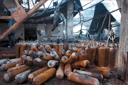 昨天下午,廣州增城市新塘鎮(zhèn)西洲乙炔氣廠的連環(huán)爆炸,就是由這些乙炔氣罐爆炸造成的
