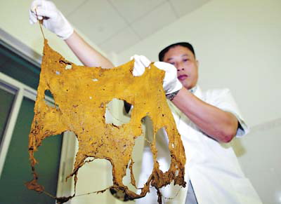 從萬女士腹中取出的紗布已開始腐爛,露出了幾個大窟窿。楊勤攝
