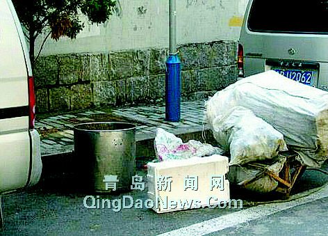 “他的舉動很奇怪,一收廢品老漢推著一輛獨輪車從瑤瑤火鍋店走出來,到振興路時,將車推到一隱蔽處(圖1),然后將一個很新的不銹鋼大桶往編織袋里裝,試了多次沒裝進去,于是又用一個大紙箱把不銹鋼大桶隱藏好!笔忻耠壬f,老漢的怪異舉動引起他的注意。這樣的桶,飯店根本就不可能當廢品賣。即便是收購的廢品,為什么還要費勁地將桶藏住呢?于是滕先生便用隨身攜帶的相機抓拍下他的行動,并開始跟蹤。