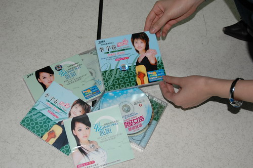 《終極PK》是每位超女迷必備的寶貝,在這個(gè)所謂“超女專(zhuān)柜”,記者原本以為這《終極PK》應(yīng)該是唯一不會(huì)假冒的了,畢竟“地球人都知道”,誰(shuí)也不敢假冒?僧(dāng)記者自信滿滿走向收銀柜臺(tái)的時(shí)候突然發(fā)現(xiàn)在當(dāng)月銷(xiāo)售排行榜上赫然放著另一張《終極PK》,封面大致相同,只是顏色比記者原本拿的那張深了些,價(jià)格也高出了5塊錢(qián),記者仔細(xì)比對(duì)才發(fā)現(xiàn),原來(lái)這張才是天娛公司出品的正版《終極PK》,先前那張同樣署著“安徽文化音像出版社”出品。