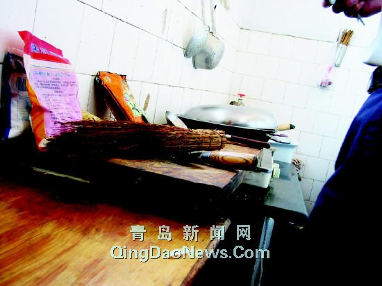 記者穿過三間教室,順著狹窄的樓梯走上二樓,來到僅容一人站立的廚房。里面一團(tuán)糟,刷碗的工具隨意放置,案臺(tái)到處都是油污,鍋碗瓢盆零亂地堆在一角。