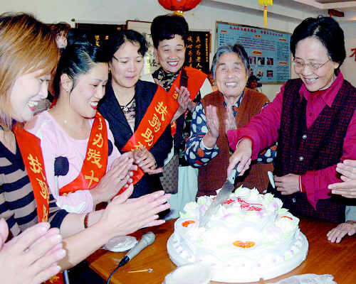 昨天,扶弱助殘十姐妹結伴來到海倫路老年公寓,為生活在這里的老人送上了重陽節(jié)蛋糕,并為他們理發(fā)、表演文藝節(jié)目等,陪老人們度過了一個愉快的節(jié)日。傅學軍攝