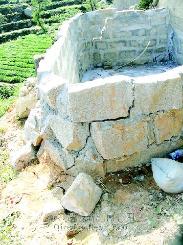 | 村民修的蓄水池也產(chǎn)生了裂縫。王哲攝 |