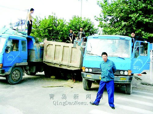 引發(fā)車損事故。    昨日上午9時許,記者接報料后趕到重慶南路與德興路路口事故現(xiàn)場。記者看到,一輛運建筑沙石的運輸卡車停在路口,后車斗向后傾斜,卡車的右后車軸已斷裂,兩只車輪拋在路邊,車上裝載的沙石傾倒出來一些。另外兩輛運輸卡車正在裝運傾倒在路上的沙石。三輛車并排擠在一起,影響了其他車輛的行駛。據現(xiàn)場的目擊者講,這輛卡車從重慶南路向德興路轉彎時,突然發(fā)出一陣巨響,戛然而停,后面兩個車輪隨即離開車體,車斗順勢向后傾倒,車上的沙石有一些堆灑在馬路上。幸運的是,當時路上行人很少,沒有傷及行人。    記者采訪完畢準備離開時,忽然聽到“嘭”的一聲,一輛由北向南快速行駛的乘用車,與一輛在德興路由西向東行駛至路口正要左拐彎的大型工程攪拌車相撞。乘用車撞在攪拌車中間部位,車頭損毀嚴重,前擋風玻璃破碎。坐在副駕駛位置的乘客頭部受傷。從現(xiàn)場情況來看,兩車相撞與運石車遮擋視線不無關系。(記者雷林)     |