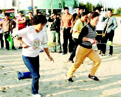 晚報訊 昨天下午,公交三公司在第一海水浴場舉行“沙灘趣味運動會”,在藍天下的沙灘上,160余名司乘人員參加了“30米跨欄”,“托球賽跑”,“螞蚱跳板”等趣味沙 灘競技。新穎獨特的沙灘競技項目,充分體現(xiàn)了海濱城市的獨特魅力,使司乘人員親身感受沙灘運動的火熱與激情。圖為托球賽跑你追我趕。(常青)