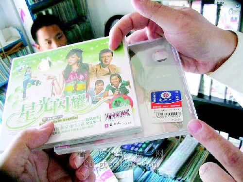 |  | | 假冒的愛書人標(biāo)貼。 |    晚報訊 昨天下午,市北區(qū)文化和新聞出版稽查部門的執(zhí)法人員接到舉報后趕到了敦化路上的一家連鎖店,查處了一批貼有假冒“愛書人”標(biāo)貼的盜版音像
