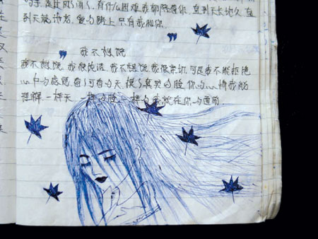 她還將“老公,我想你,我愛你,我要你一生一世,親愛的老公”這一句話寫了數(shù)百行,填滿了整整四頁日記