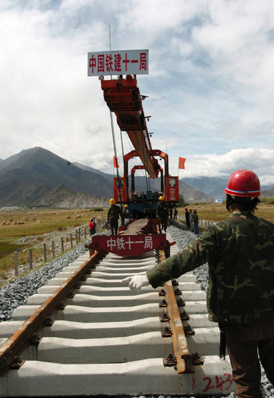 2005年9月18日,中鐵十一局三公司青藏鐵路項目部鋪軌抵達(dá)青藏鐵路拉薩西站。