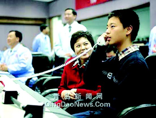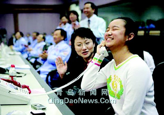 12日21時32分,航天員家屬費俊龍的妻子王潔,兒子費迪;聶海勝的妻子聶捷林,女兒聶天翔在北京航天飛行控制中心,通過飛船天地話音通訊系統(tǒng),與乘坐“神舟”六號飛船在太空飛行的航天員進行實時通話。21時39分,天地通話結束。