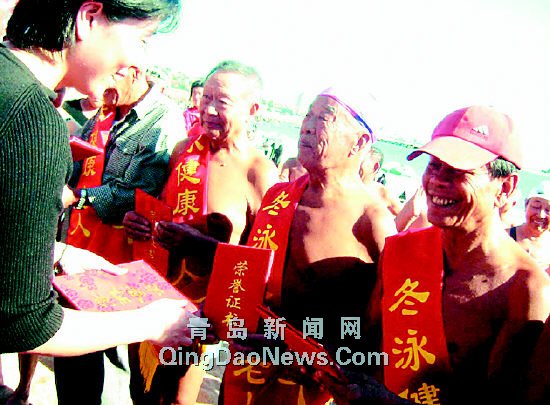 本報訊 11日,青島首批冬泳健康老人評出,市老領(lǐng)導(dǎo)武杰等13名老人當(dāng)選。    據(jù)了解,這些健康老人,年齡最大的已經(jīng)89歲,看上去普遍要比實際年 齡年輕10多歲,多數(shù)人因為堅持冬泳,常年不感冒、不打針、不吃藥。(崔燕)