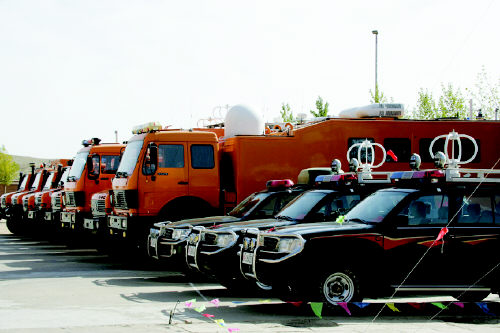 停放在著陸場(chǎng)站內(nèi)的特種車輛