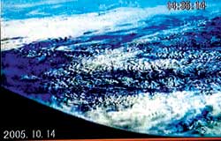 10月14日14時(shí)35分,神舟六號(hào)航天員傳回的畫面,畫面中展示的是從太空看到的中國大地。新華社發(fā)