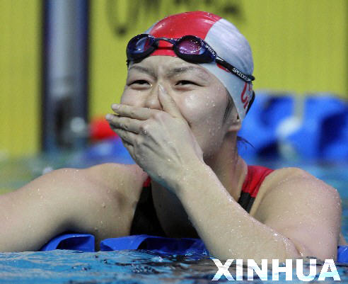 新華網山東頻道10月15日 10月14日,解放軍選手周雅菲在十運會游泳比賽中,以58秒57的成績獲得女子100米蝶泳冠軍。圖為周雅菲在獲勝后喜極而泣的連續(xù)瞬間。 (新華社記者 王雷 攝)