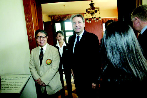 昨天,省委副書(shū)記、市委書(shū)記杜世成在香格里拉大飯店會(huì)見(jiàn)了國(guó)際奧委會(huì)主席羅格博士一行,并與代表團(tuán)共進(jìn)早餐。
