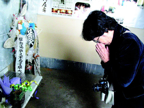 在毛子埠大屠殺紀(jì)念館紀(jì)念碑前獻(xiàn)上一束潔白的百合花后,來自日本的73歲女教師石鄉(xiāng)岡日出子雙掌合十默默祈禱,末了,她轉(zhuǎn)過身來,沖著大屠殺幸存者72歲的村民趙有海深深地鞠了一躬,“我要將自己在中國所見到的一切帶回日本,讓那些否認(rèn)侵華歷史的日本人有所警醒!弊蛱欤l(xiāng)岡日出子在接受本報記者的獨家專訪時懇切地說。