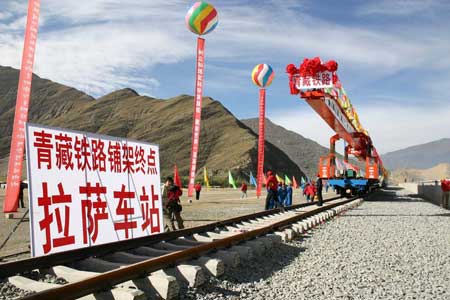 青藏鐵路鋪架至終點(diǎn)拉薩車站。
