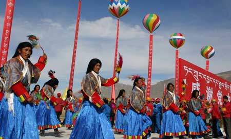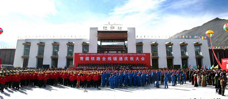 青藏鐵路全線鋪通慶祝大會在拉薩車站舉行。