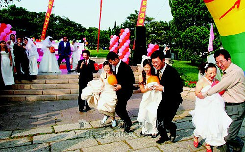 身披一襲白紗,在海邊的紅礁石上,與自己相愛的人牽手。身旁是大海,遠處見青山。浪漫的青島海濱,昨天再次見證了一次盛大的婚典。青島大喜利婚紗會所的工作人員早早地到位,不僅免費為新人們提供婚紗,還安排了技藝精湛的專業(yè)人員為新人們服務(wù),使她們的形象更加奪目。小青島景區(qū)管理處為活動的順利舉辦提供了很好的條件。