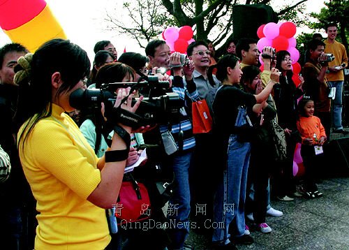 “最難忘記千禧年的那天晚上,在青島的海濱,當(dāng)我仰頭觀看夜空中綻放的五彩煙花時,無意中與他的目光不期而遇,從此,我們相識,相知,最終牽手今生!弊蛱欤瑓⒓踊顒拥拇扌〗阏勂甬(dāng)年的情形時,依然是一臉的喜悅。而站在她身旁的那個“他”,正在喜滋滋地觀看朋友幫兩人剛剛錄下的DV。在婚典儀式上,兩人的一首《月亮代表我的心》明明白白地告訴大家,他們的愛有多深。
