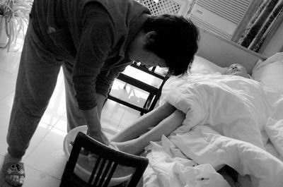 那次之后,王茂連的肺部就經(jīng)常發(fā)炎,一發(fā)炎就高燒,本來(lái)每天就得打針輸液,一高燒,輸液量就激增,最多的時(shí)候一天得輸十幾瓶。醫(yī)生不可能時(shí)刻都在身邊,赫清芳就自己學(xué)扎針,剛開始經(jīng)常扎得王茂連兩只胳膊青一塊紫一塊,她自己也累得腰酸腿疼,往往王茂連剛睡,赫清芳就也在他的床腿邊睡著了。