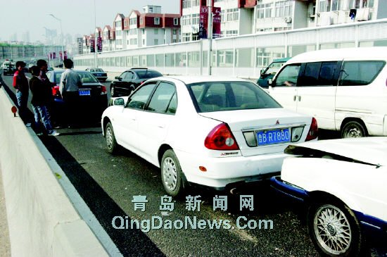 據(jù)司機劉女士介紹,事故發(fā)生在上午11時左右,當時由東向西行駛的車輛行至廣電大廈附近時,由于前面的兩輛車突然發(fā)生碰撞,緊跟在后面的幾輛車還沒有反應過來,也跟著一輛輛撞向前車的尾部。記者張建華攝