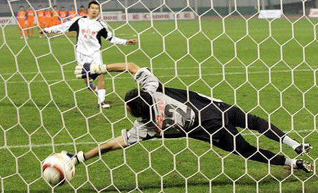 根據(jù)規(guī)則,在沒有休息的情況下,加時(shí)賽下半時(shí)在兩隊(duì)交換場地后,馬不停蹄的繼續(xù)進(jìn)行。比賽進(jìn)行到這個(gè)時(shí)候,雙方的體力都出現(xiàn)了很大的下滑,武漢隊(duì)兩名隊(duì)員先后抽筋。加時(shí)19分鐘,魯能打到禁區(qū)內(nèi),武漢隊(duì)門將撲球脫手,但魯能隊(duì)員并沒有利用這個(gè)機(jī)會(huì)。22分鐘,武漢隊(duì)王文華故意拉人放倒高明,同樣是已經(jīng)有黃牌在身的他,主裁卻手下留情。鄭智開出任意球,丹丘搶后點(diǎn)頭球攻門頂高。26分鐘,魯能禁區(qū)內(nèi)配合,高明轉(zhuǎn)身射門又被武漢后衛(wèi)擋出。從體力上看,武漢隊(duì)已經(jīng)接近極限,隊(duì)員確實(shí)跑動(dòng)非常費(fèi)勁了。但魯能泰山今天的比賽狀態(tài)的確表現(xiàn)得不興奮。最終,比賽打滿120分鐘,總比分仍然是1-1,雙方不得不進(jìn)入到了殘酷的點(diǎn)球決戰(zhàn)中。