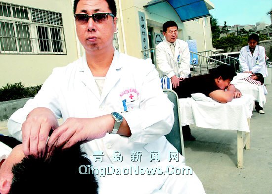 15日是國際盲人節(jié)。青島市按摩康復(fù)醫(yī)院的盲人醫(yī)師走上街頭,開展義務(wù)診治活動(dòng),展示他們自強(qiáng)不息的奉獻(xiàn)精神。李學(xué)亮攝