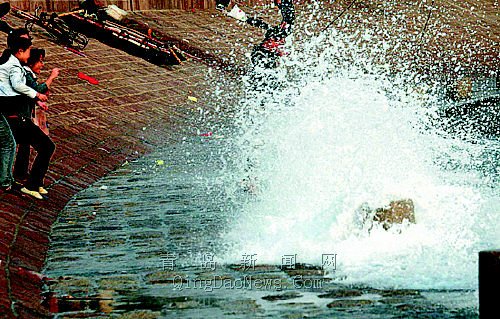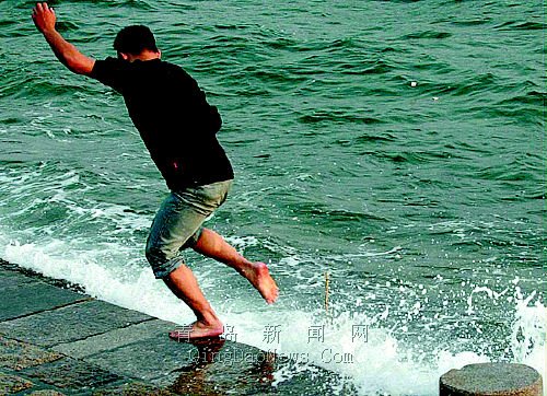 昨天下午3時30分,青島沿海正值高潮,沿海一線涌浪較大,在音樂廣場西側(cè)附近海邊的防浪堤上,幾名青年男女正在用自制的工具釣螃蟹。    現(xiàn)場看到,一名小伙選擇涌浪退下的間隙將釣具插到防浪堤的石頭縫中,幾分鐘后取回時便可釣到一兩只小蟹。涌浪幾次將取放釣具的小伙淹沒,險象環(huán)生。記者和周圍游人提醒他們浪大危險時,小伙子竟笑著回答“沒事”。    此處地段涌大浪急,近兩年已有多人被涌浪卷到海里,數(shù)條生命被風(fēng)浪吞噬,一些年輕人不吸取教訓(xùn),仍然拿自己的生命當(dāng)兒戲。這是記者現(xiàn)場拍到的一組鏡頭。徐常青攝影報道         |